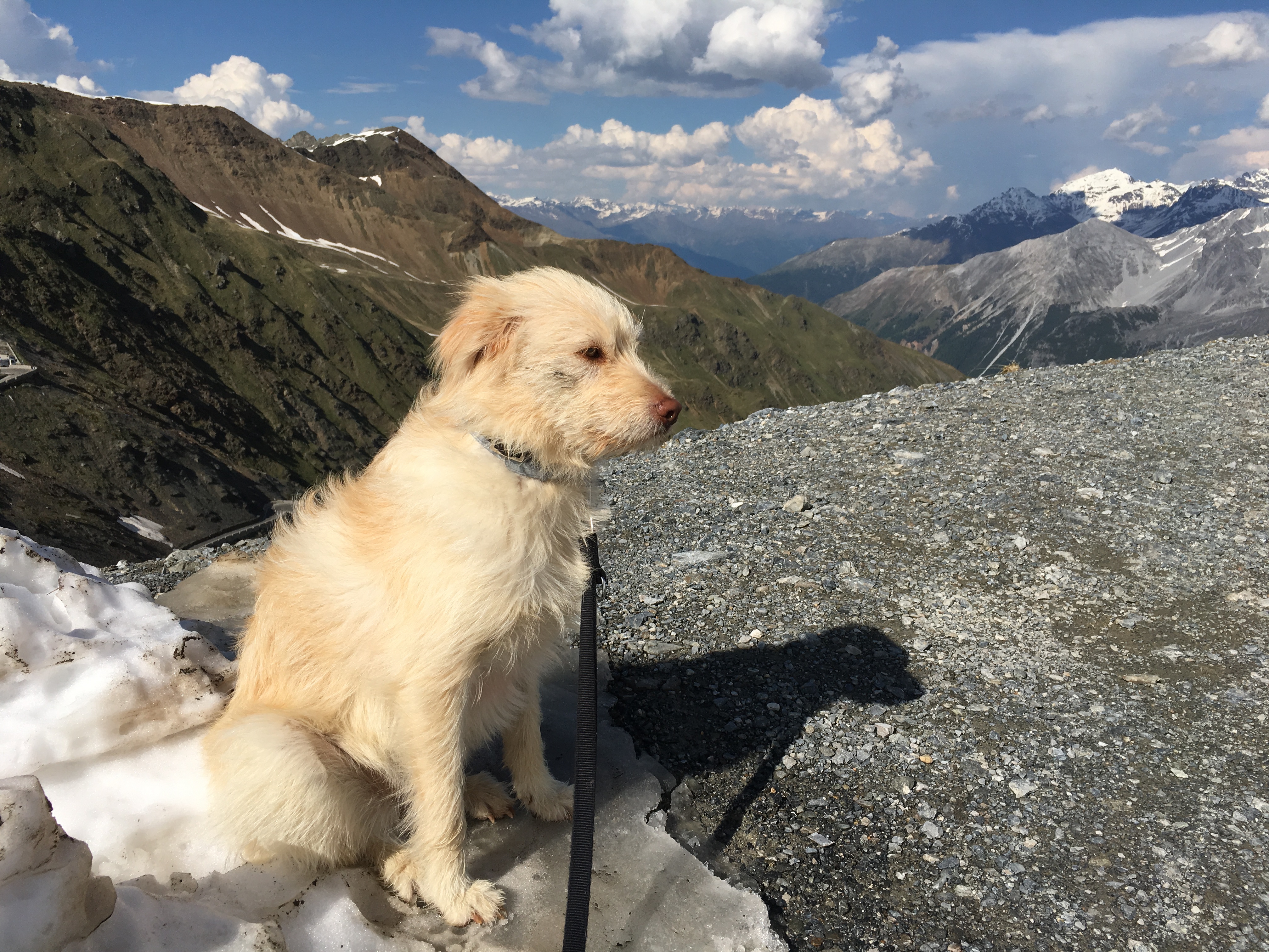 Ui ui ui. Da hab ich mir ja was vorgenommen. Bestellt ist so ein Zelt schnell. Und auch das was man sonst so braucht. Auf die Idee hat mich ein Bekannter vom Hundeverein gebracht. Und das war gut so. Spontan zogen Herr Lutz 😉 und meiner Wenigkeit los. Beziehungsweise fuhren. Nach Glurns in Südtirol. Zu einem uns bekannten Campingplatz namens Gloria Vallis. Das Zelt war schnell aufgebaut. Ok. Ein paar Schweißtropfen hat es schon gebraucht. Hatte ja auch 34 Grad. So fuhren wir erst noch auf das Stilfser Joch auf 2758 Meter. Schnee für Luz. Und er sie hat es genossen. Seht selbst bei den Fotos. Und es hatte 18 Grad. Welch Erholung. Zurück ging es über einen schönen Pass und eine wunderbare Landschaft zum Campingplatz. Dort hat mir dann Luz erlaubt in ihrem meinem Zelt zu übernachten. Danke nochmals dafür. Und ich glaub das hat ihr gut gefallen. Die anderen Tage waren wir noch viel wandern, in Meran und gecoachen. Obwohl es heiß war erlebten wir tolle Aussichten und Sehenswürdigkeiten. Luz ist auch für alles gut zu haben. So machte ihr das Zelten und der Campingplatz nichts aus und sie konnte auch wunderbar entspannen. Mein Fazit: gerne wieder. Nur so heiß darf es nicht sein. Denn ich konnte Luz halt nicht einfach mal ins Zelt oder Auto packen wenn ich duschen oder was besorgen wollte.